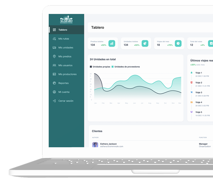 AGABARO nace con el objetivo de facilitar la administración precisa y ágil de predios dedicados al cultivo de agave. Esta solución ERP está diseñada para registrar cada viaje hacia los predios, controlar el volumen de agave cortado y generar reportes claros y compartibles que permiten a los dueños tomar decisiones informadas y transparentes.